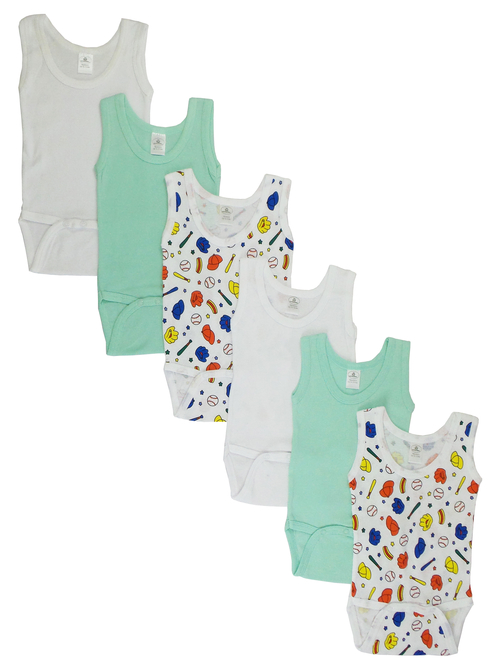 Boys’ Sleeveless Variety Print Tank Top One Piece made from 100% cotton rib knit fabric. This 6 pack is such a fun piece to have in your little guy’s wardrobe during the spring and summer months. The fun prints will compliment his interests and personality. The fabric is also very soft and breathable so he’ll remain comfortable, always.