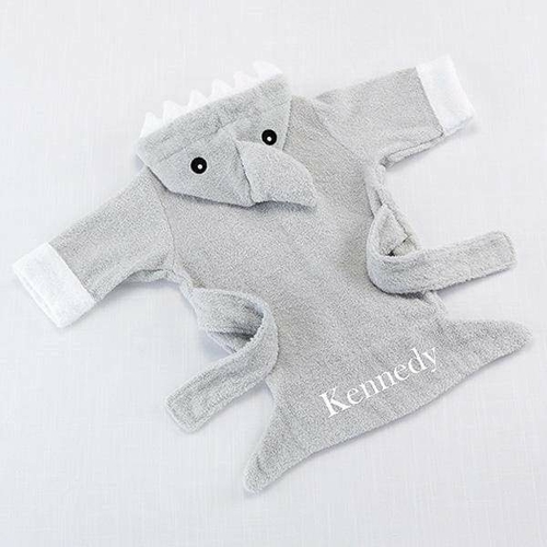 Add a little under the sea fun to bath time with this adorable shark themed gift. Our “Let The Fin Begin” Gray Shark Robe is made of soft gray terry cotton and features so many fun shark elements that we don’t know where to begin – ferociously adorable teeth, a fin, and of course, a tail with the option to personalize it with baby’s name or initials!